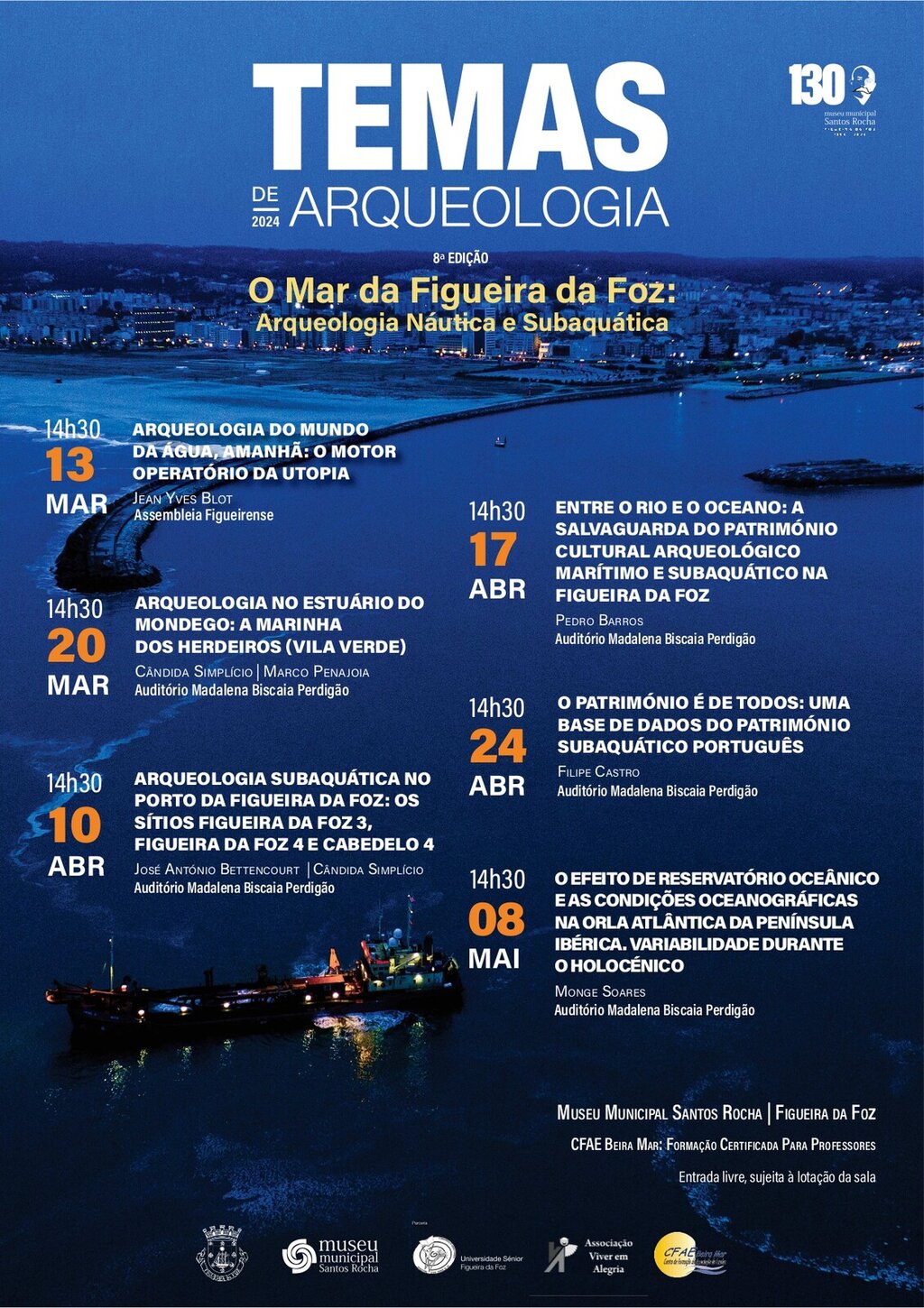 O Museu Municipal Santos Rocha promove, no ano em que assinala o seu 130.º aniversário, a 8.ª edição do ciclo de conferências «Temas de Arqueologia» dedicado ao tema «O Mar da Figueira da Foz: Arqueologia Náutica e Subaquática».