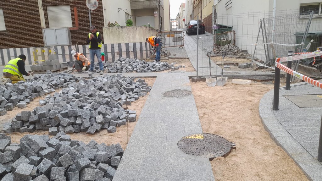 Na obra de ampliação da rede de saneamento do Parque Industrial e Empresarial da Figueira da Foz, na freguesia de São Pedro, foram executados trabalhos de reposição do pavimento em granito.