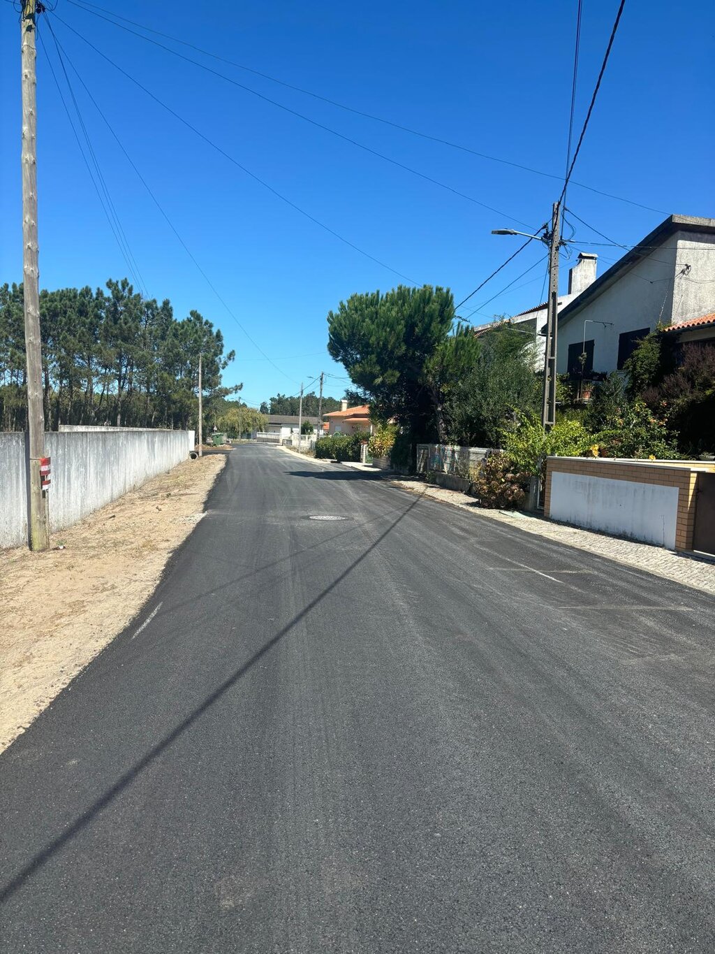 A esta data a pavimentação betuminosa encontra-se concluída, estando em curso os trabalhos de enchimento e regularização de bermas, com base em material britado de granulometria extensa e levantamento de tampos e aros de infraestruturas.