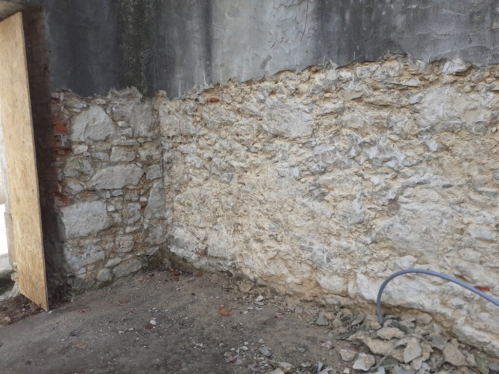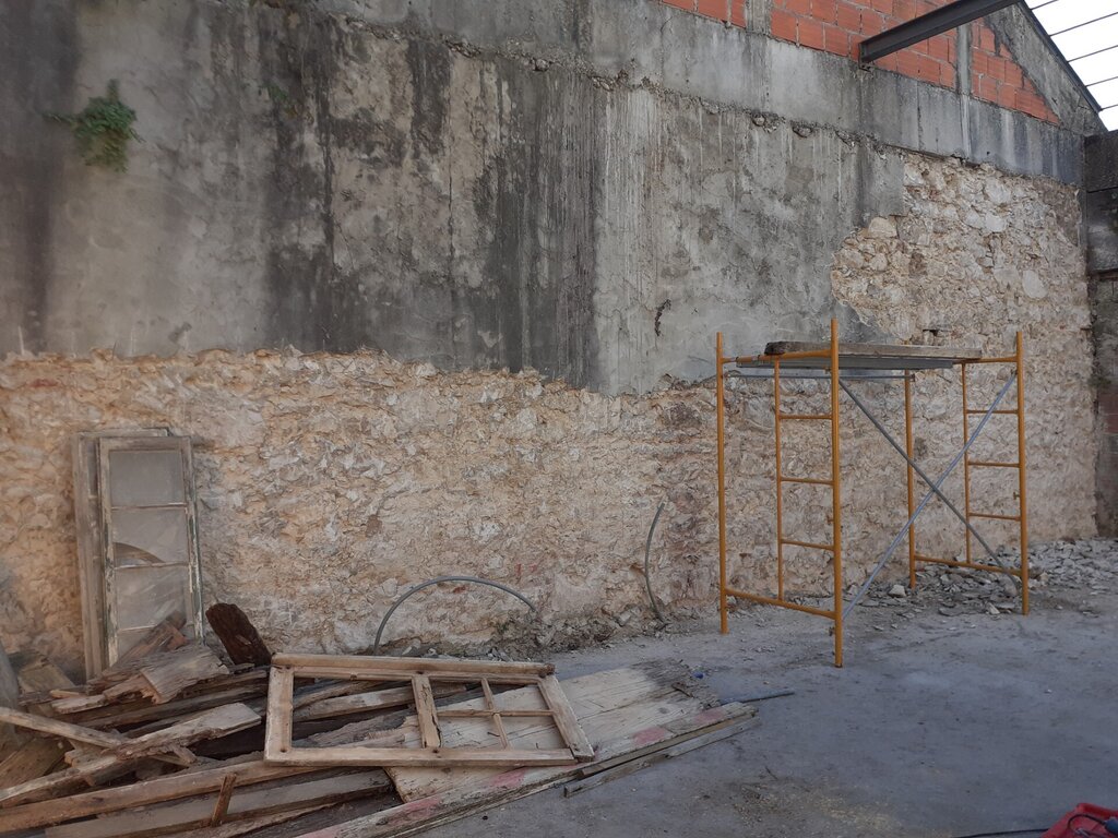 Estão a decorrer os trabalhos de demolição e remoção de tubagens existentes no interior do edifício, bem como trabalhos de picagem de rebocos antigos nas paredes exteriores.