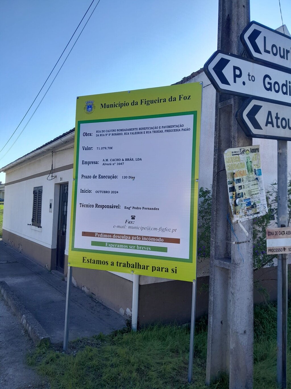 Já se encontra a ser executada, na freguesia do Paião, a empreitada “Rua do Calvino, nomeadamente beneficiação de pavimentos na Rua Sra. Do Rosário, Valeiros e Rua Trísias”.