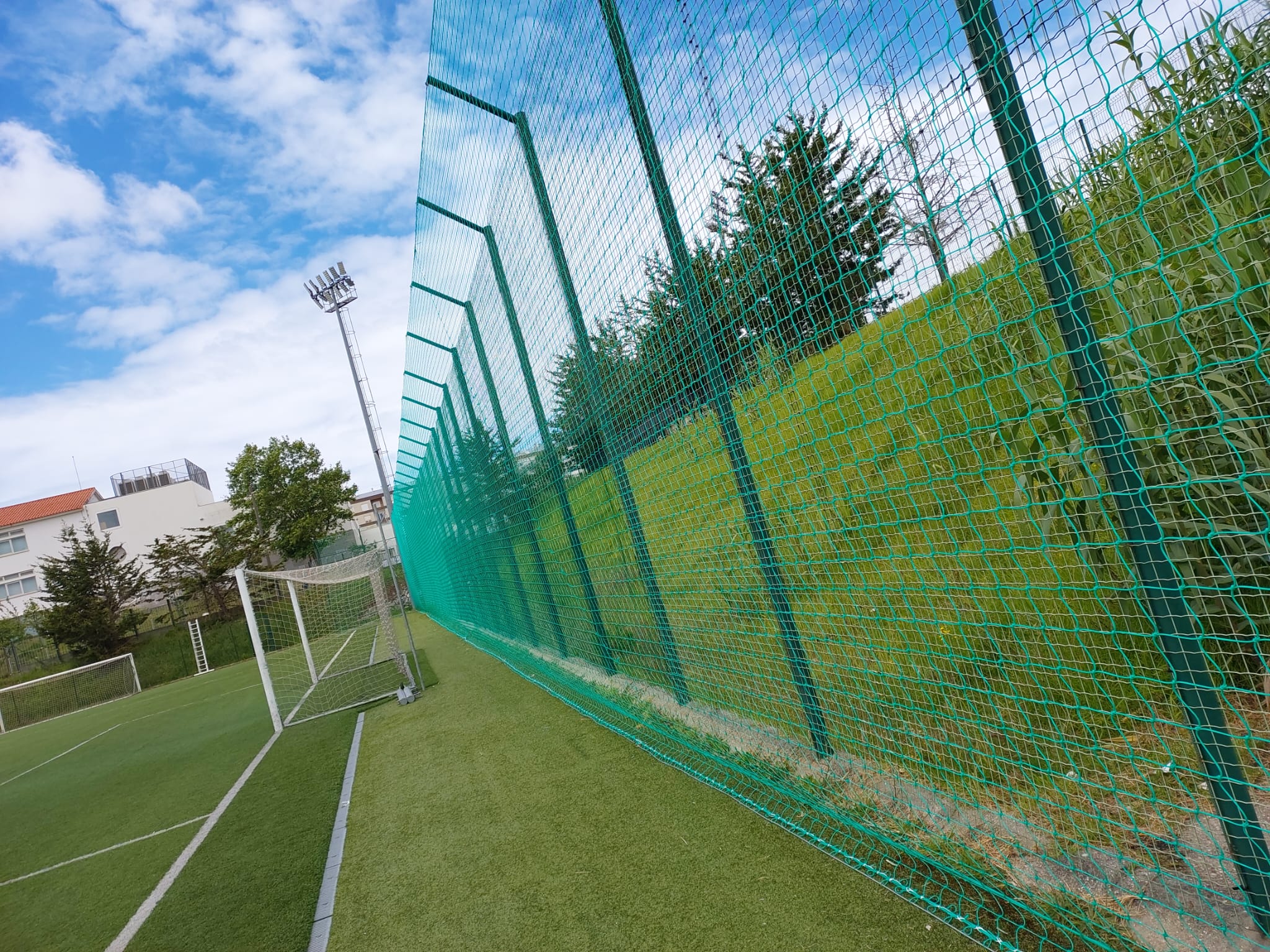 A empreitada, no valor de 25.929,71 € acrescido de IVA, já concluída, consistiu na reparação das redes, no fornecimento e aplicação de rede saca bolas e reparações pontuais na rede de vedação.